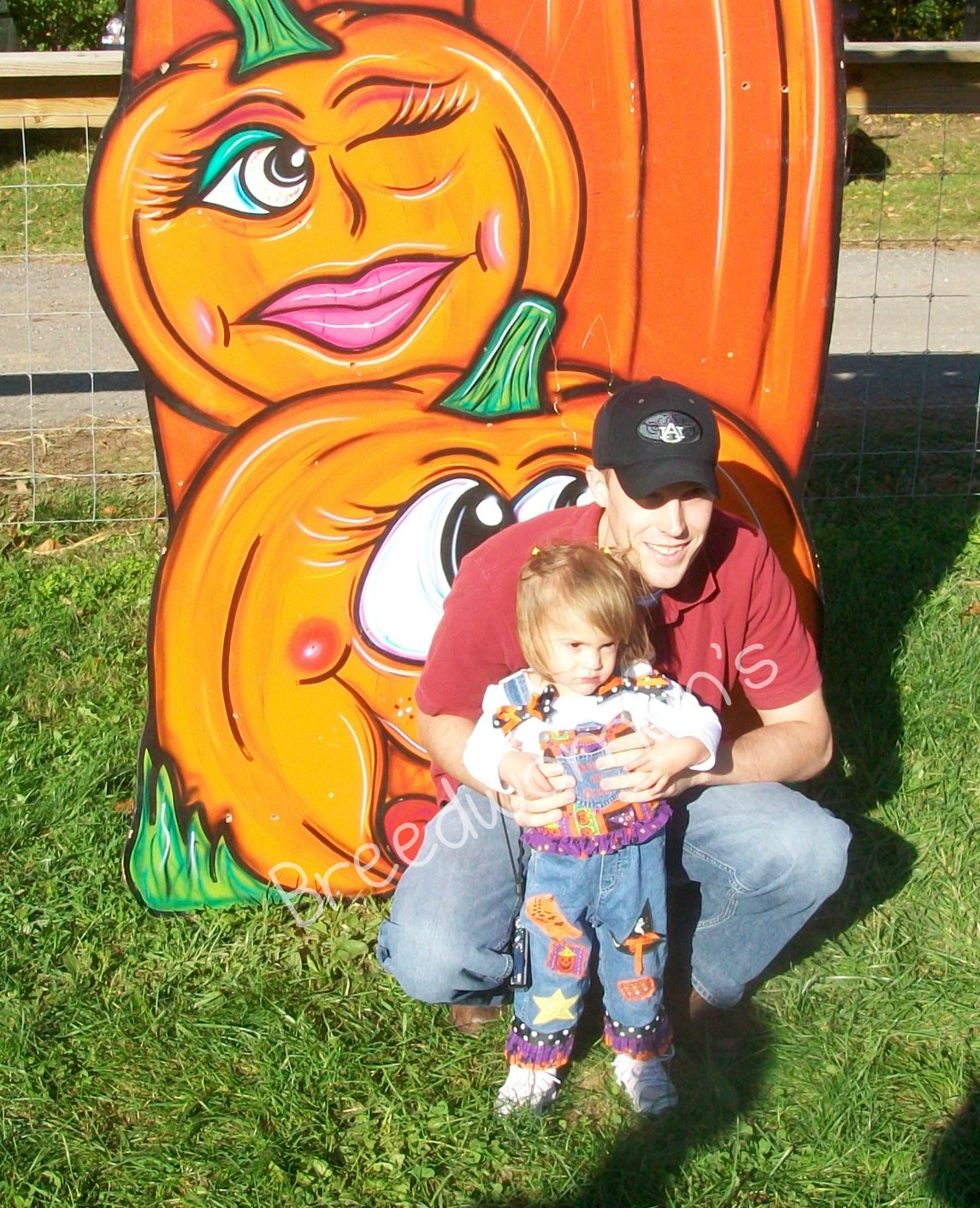 We went to the pumpkin patch!!! I love going and doing Holiday related activities with Kinsley, no matter the season, but there's something about fall! My little bean was VERY excited about going but once there I think she got a little overwhelmed. She had this shy smirk on her face a good chuck of the time, but over all she was running everywhere and VERY excited to see "PUMPKINS!"